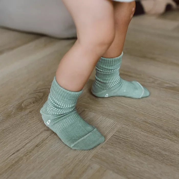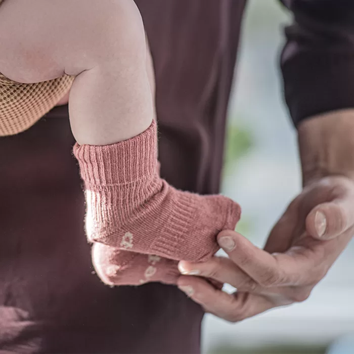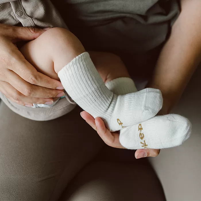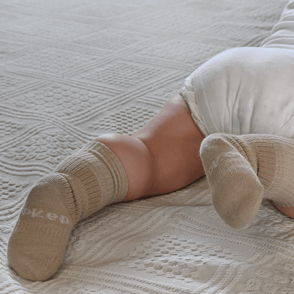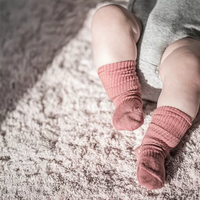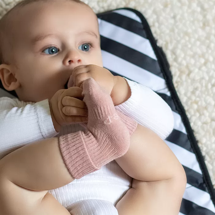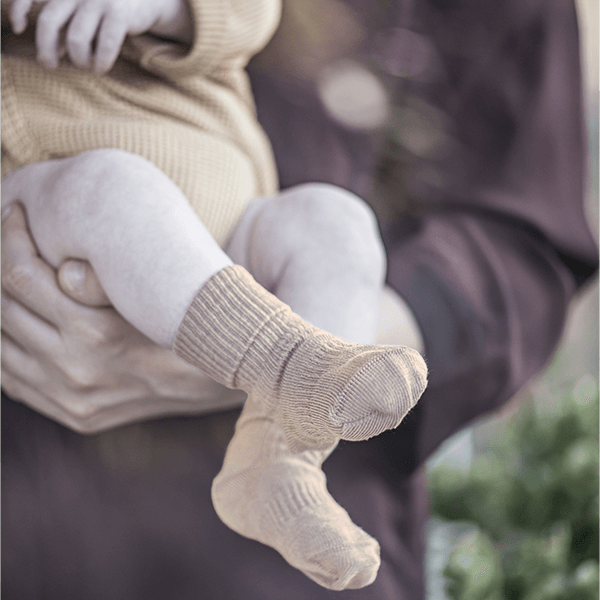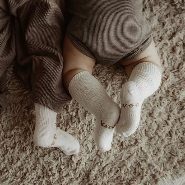 These socks stay on. Hard to believe, right? That is why we’ll explain it a bit more. The Stay-on-Socks have two smart ‘stay on zones’. These are elastic straps sewn into the fabric: above the heel and just in front of the toes (instep). They ensure that the socks don’t slide off. Thanks to these straps and the ideal fit, the socks stay nice and comfortable. Our socks of course have a soft flat toe-seam that does not irritate. Neat, comfortable baby socks, but smarter.