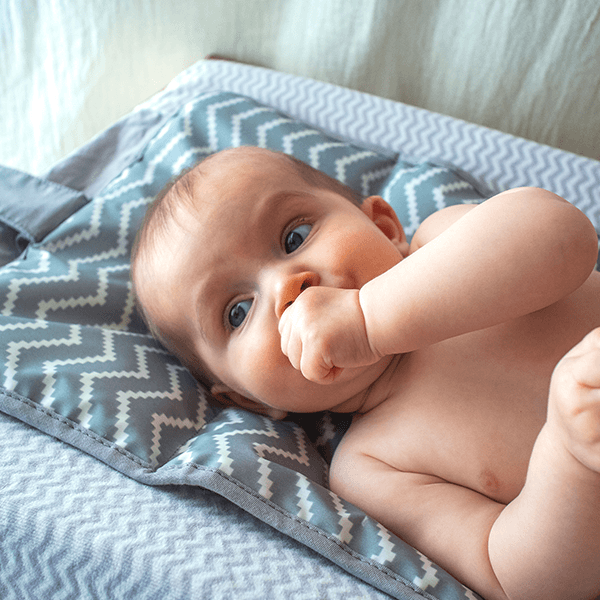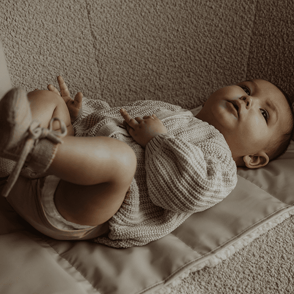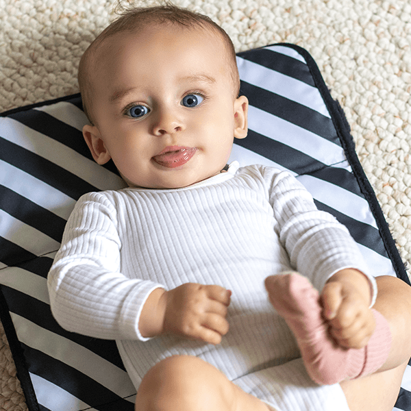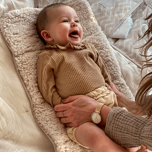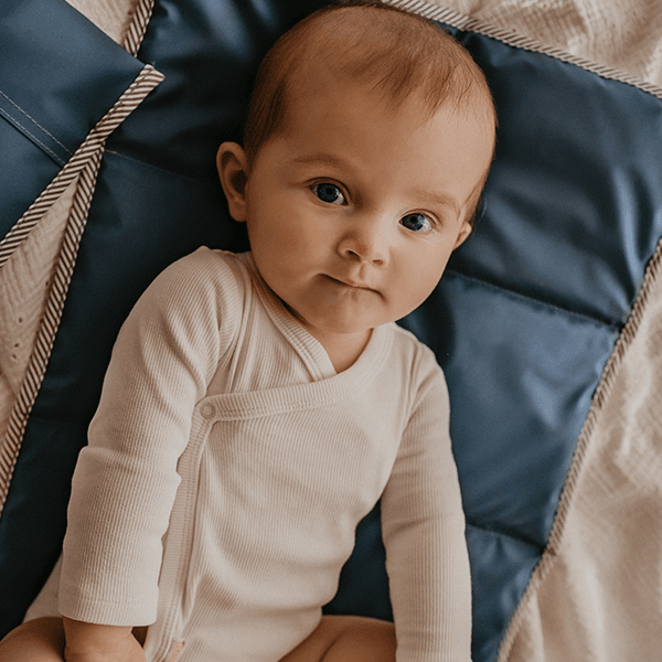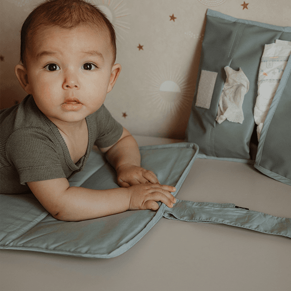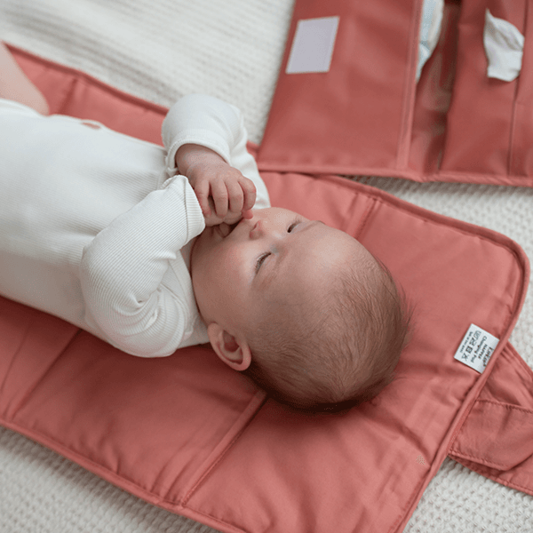 The changing mat has two different sides. One side is soft and uncoated, great for warmer days, because the soft fabric doesn’t stick to the skin of your baby and is nice and soft. You can use this side if you want to put your baby down for a while, or when you want to change its wet nappy. The other side is for the number 2. It’s made of a removable, 100% PVC-free coated material. After cleaning a dirty poo nappy, you can easily clean this side with a wipe. Has the mat become dirty? Then you can simply put it in the washing machine.
