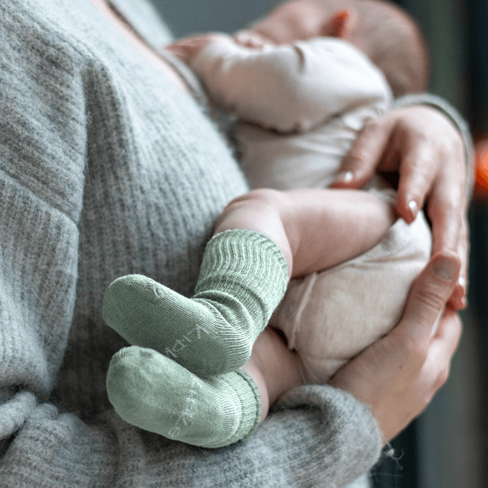 These socks stay on. Hard to believe, right? That is why we’ll explain it a bit more. The Stay-on-Socks have smart ‘stay on zones’. These are elastic straps sewn into the fabric: above the heel (and on the bigger sizes: on the instep). They ensure that the socks don’t slide off. Thanks to these straps and the ideal fit, the socks stay nice and comfortable. Our socks of course have a soft flat toe-seam that does not irritate. Neat, comfortable baby socks, but smarter.